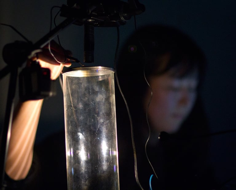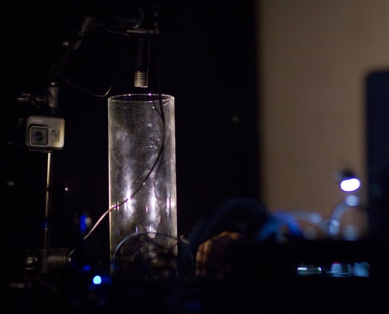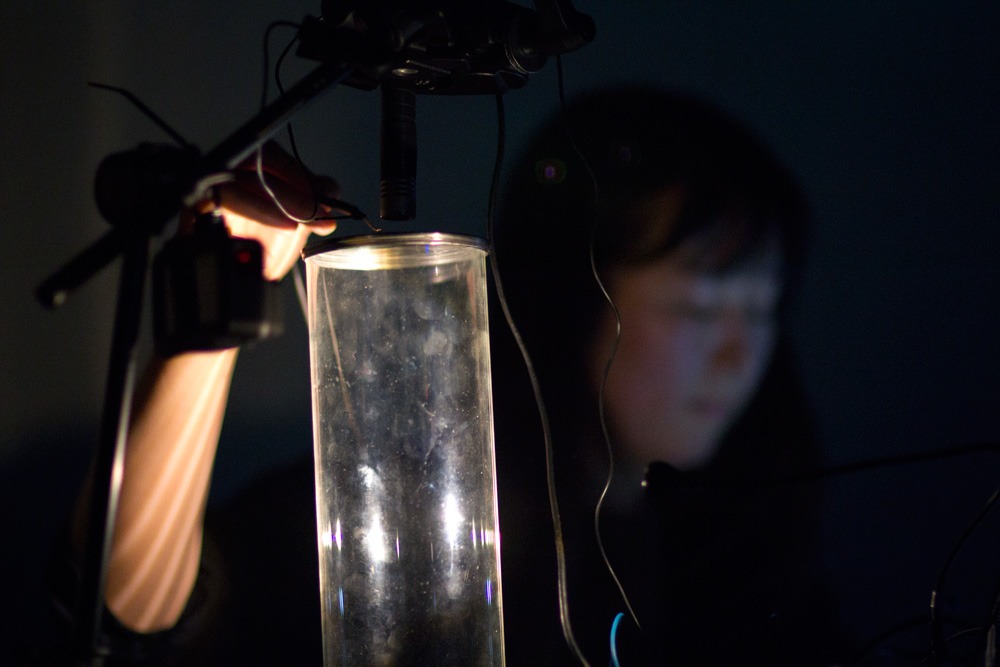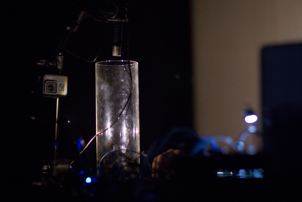 The void is a sound performance explores the range of the frequency in empty space. The sound is produced in a closed glass tube by generating audio feedback and I attempt to push the sound at the very limit level towards both low and high frequency within the audible scale. The sound starts from nothing in empty space (void) and it gets amplzified by time proceeds. The range of audio frequency is controlled by oscillating, modulating and shifting the hertz when the space is closed and open. Also, the environmental factor influences the sound amplification working like triggers. Different DIY devices are used to create additional sound. These make different ways of feedback between multiple inputs and outputs. The audience will listen to a wide range of sound from very low to very high and fluctuations of the sound waves in different time settings.
